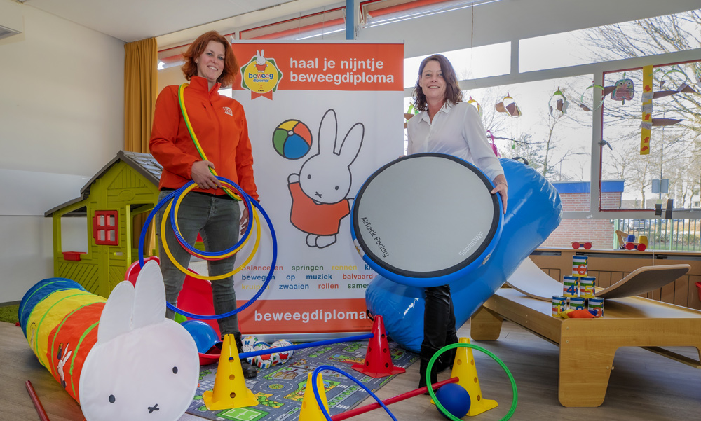 Een VVE peuterspeelzaal biedt voor- en vroegschoolse educatie. In Apeldoorn zijn 17 VVE peuterspeelzalen, ondergebracht bij Doomijn Kinderopvang, Smallsteps Partou en KOOS. Naast het leren van taal gaat bewegen nu ook een belangrijk onderdeel uitmaken van de dag met ‘bewegen met Nijntje’. De VVE coaches zijn erg blij met deze ontwikkeling. Gemeente Apeldoorn hoopt dit nog verder uit te kunnen breiden bij meer kinderopvangorganisaties.