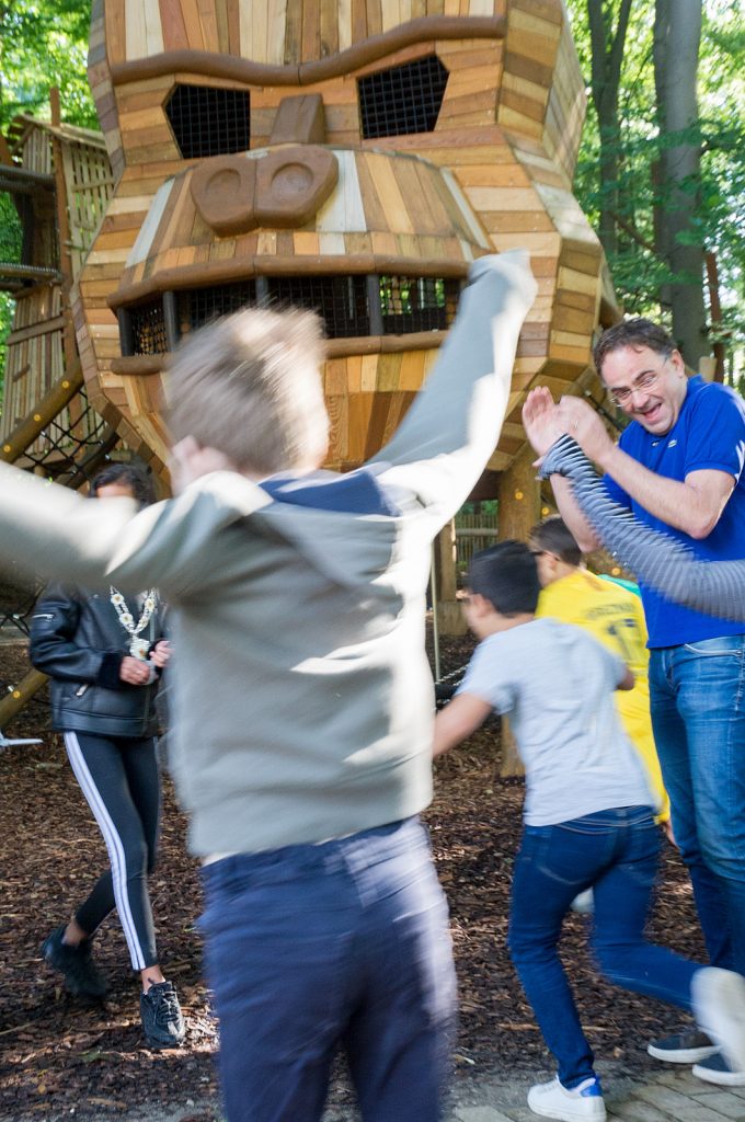 Na de opening en challenge kon de schoolklas samen met kinderburgemeester Sibel nog lekker spelen en de aap uithangen in de nieuwe speeltuin. Roel Welsing, directeur van Apenheul kijkt terug op een geslaagde opening van de speeltuin. ‘Spelende kinderen die niet meer uit de speeltuin weg te krijgen zijn daar doe je het voor’.