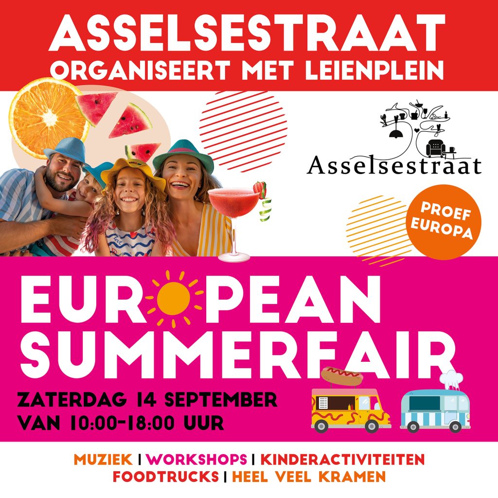 Op zaterdag 14 september 2024 van 10:00 tot 18:00 uur worden de Asselsestraat en het Leienplein omgetoverd tot de European Summerfair, een bruisende markt met een gevarieerd aanbod van entertainment, food trucks, kinderactiviteiten en optredens van diverse verenigingen uit Apeldoorn, allemaal met een Europese twist. Dit evenement viert de diversiteit en cultuur van Europa en
