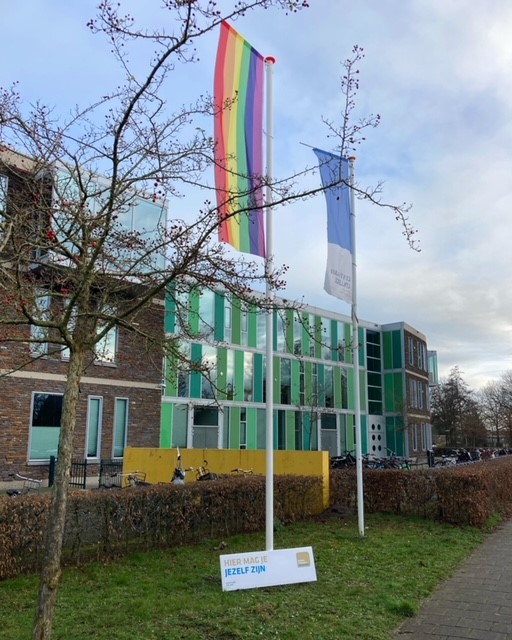 Zijn wie je wilt zijn en houden van wie je wilt houden, dat is waar wij voor staan. Met deze vlag hopen wij steun te geven aan leerlingen of betrokkenen die worstelen met thema’s rondom diversiteit.
