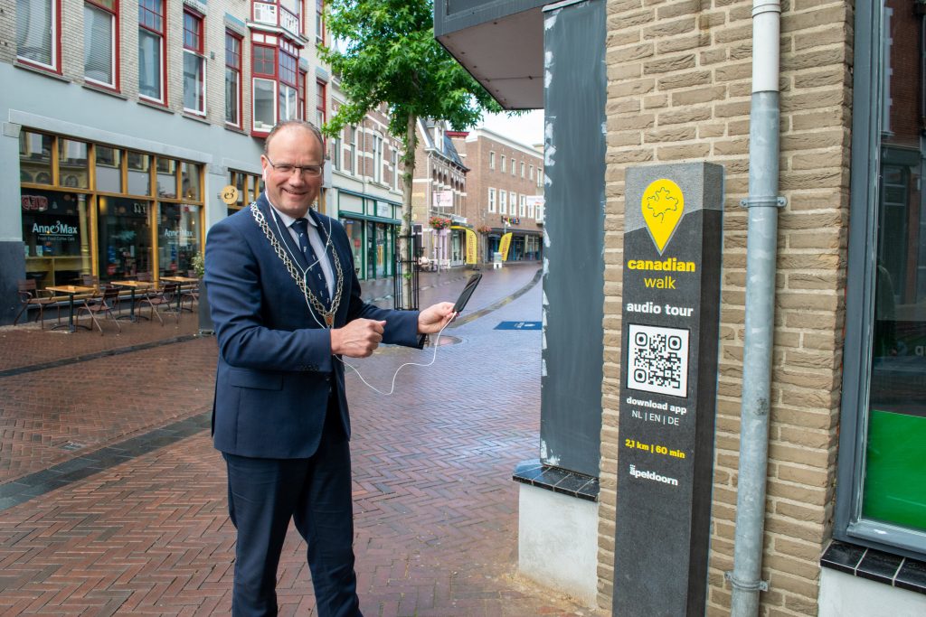 Door COVID-19 is de oplevering van de audiotour uitgeweken naar 7 juni 2020 – de Canadese ‘Dag van de Strijdkrachten’ (Canadian Armed Forces Day). Deze dag is een viering van de Canadese strijdkrachten, hun erfgoed en hun personeel. De Apeldoornse burgemeester Ton Heerts heeft als eerste de Canadian Walk audiotour beluisterd en gelopen: “De Canadian Walk plaatst Apeldoorn in een internationaal perspectief. Apeldoorn maakt deel uit van de wereldgeschiedenis rond de tweede wereldoorlog. Een tijd waarin veel gebeurt is en de Canadian Walk is een mooie start om je verder te verdiepen in de geschiedenis van de Veluwe.”