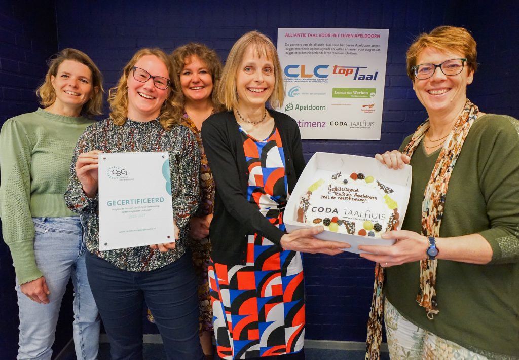 CBCT toetst als onafhankelijke organisatie de kwaliteit van bibliotheek- en cultuurorganisaties en van programma’s en diensten voor geletterdheid. Een belangrijk onderdeel van deze toetsing is het maatschappelijke effect en de toekomstbestendigheid. Met het certificaat heeft Taalhuis Apeldoorn de bevestiging gekregen dat de functies, organisatie en diensten op een juiste manier uitgevoerd worden en dat aan alle kwaliteitsnormen wordt voldaan. Het certificaat is vier jaar geldig.