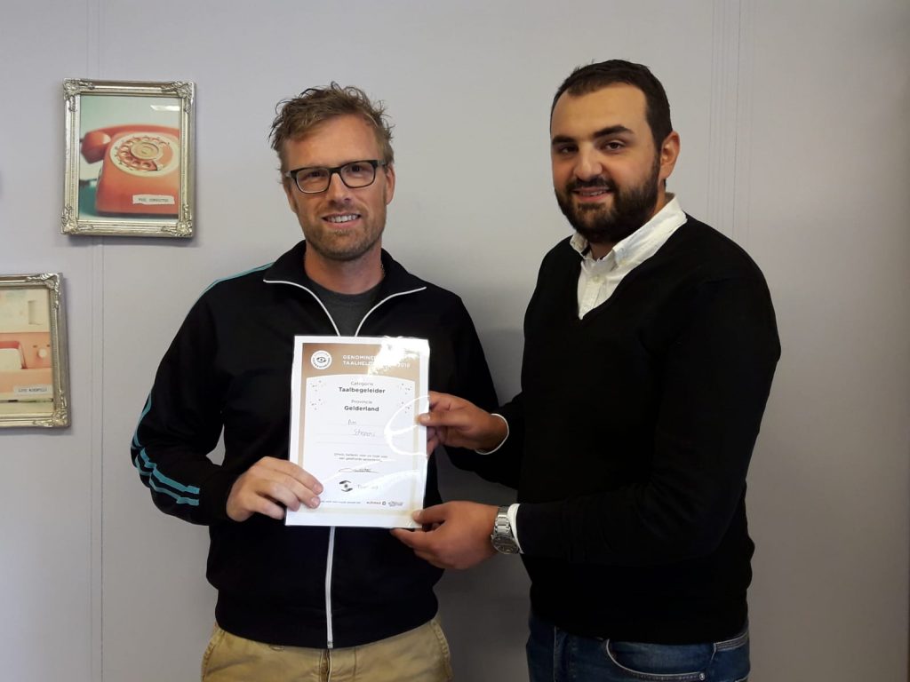 Maandag 9 september 2019 ontving Bas Schepers, eigenaar van Het Heldenbureau, een lintje uit handen van Egzon Peci, projectleider van Stichting Lezen en Schrijven. Het lintje staat symbool voor een nominatie voor de TaalHeldenprijs 2020, in de categorie Taalbegeleider. Er zijn in totaal 25 genomineerden in de provincie Gelderland. De winnaar van de provinciale verkiezingen