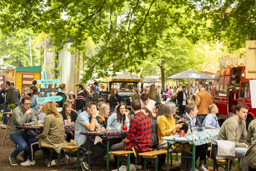 Het tweede weekend van het Lepeltje Lepeltje seizoen in 2023 was een groot succes. Vele Apeldoorners bevonden zich in het Beekpark tijdens Pinksteren. Het groene park was rijk gevuld met foodtrucks en levensgenieters van alle leeftijden. Muzikanten, deels aangedragen door poppodium Gigant, hebben hun klanken laten brommen over het grasveld. Bezoekers zochten naar mooie vondsten