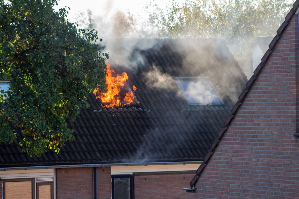 Een korte maar hevige brand veroorzaakte vanochtend ernstige schade aan de zolder van een woning aan de Van Roekelweg in Apeldoorn. Kort voor de middag brak daar brand uit. In huis was een vrouw aanwezig welke de brandweer heeft gebeld. De vrouw kon op tijd met de honden naar buiten ontsnappen. De toegesnelde brandweer heeft