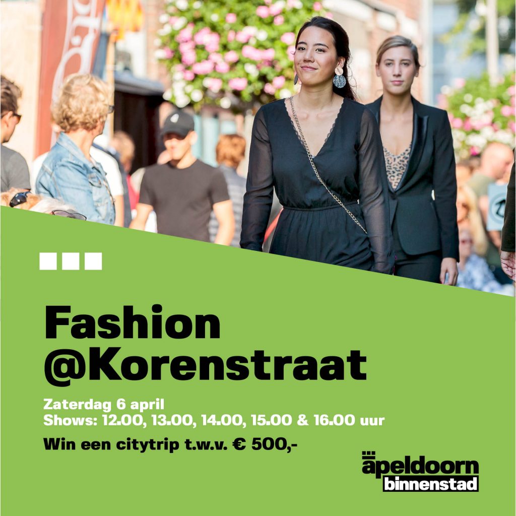 Op zaterdag 6 april 2019 organiseren ondernemers in de Apeldoornse Korenstraat het halfjaarlijkse mode-event Fashion@Korenstraat. Over een groene catwalk van 130 meter lang tonen diverse modellen de nieuwste voorjaars- en zomertrends rechtstreeks vanuit de winkels in de Korenstraat op het gebied van dames- en herenmode, accessoires en lifestyle. Over Fashion@Korenstraat De ondernemers in de Korenstraat
