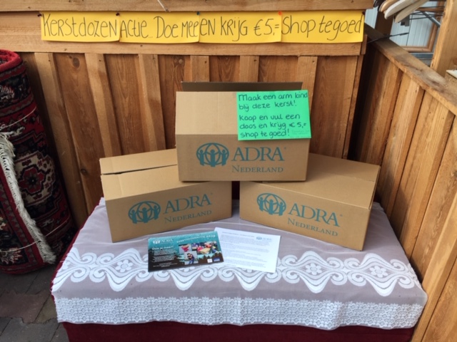 Hulporganisatie ADRA Nederland maakt jaarlijks duizenden kinderen blij met kerstpakketten voor arme kinderen in Oost-Europa. Dit jaar gaan de dozen naar kinderen met een beperking, zieke kinderen en Romakinderen in Servie. Kringloop de Waterlelie aan de Hameinde 13a te Loenen geeft deze dozen ook uit. Voor vijf euro kunt u daar een doos kopen en