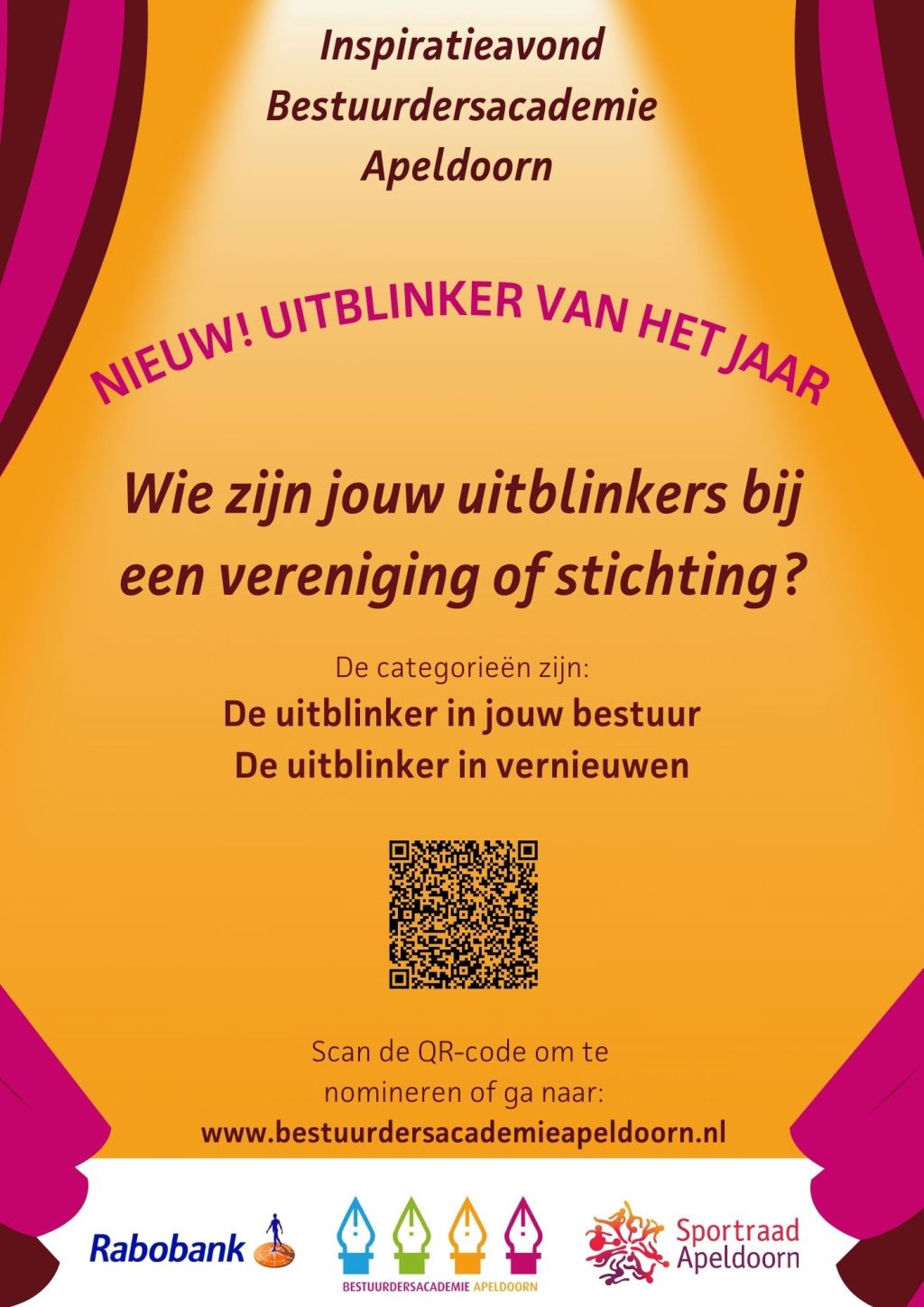 Voor bestuurders van een vereniging of stichting of geïnteresseerden in besturen organiseren de Bestuurdersacademie Apeldoorn een avond vol energie en inspiratie. Het thema van de inspiratieavond 2023 is “Nu tijd om te bewegen!”. We lichten uit hoe je beweging kan krijgen in je vereniging of stichting op het gebied van duurzaamheid, omdenken, het flexibel inzetten van